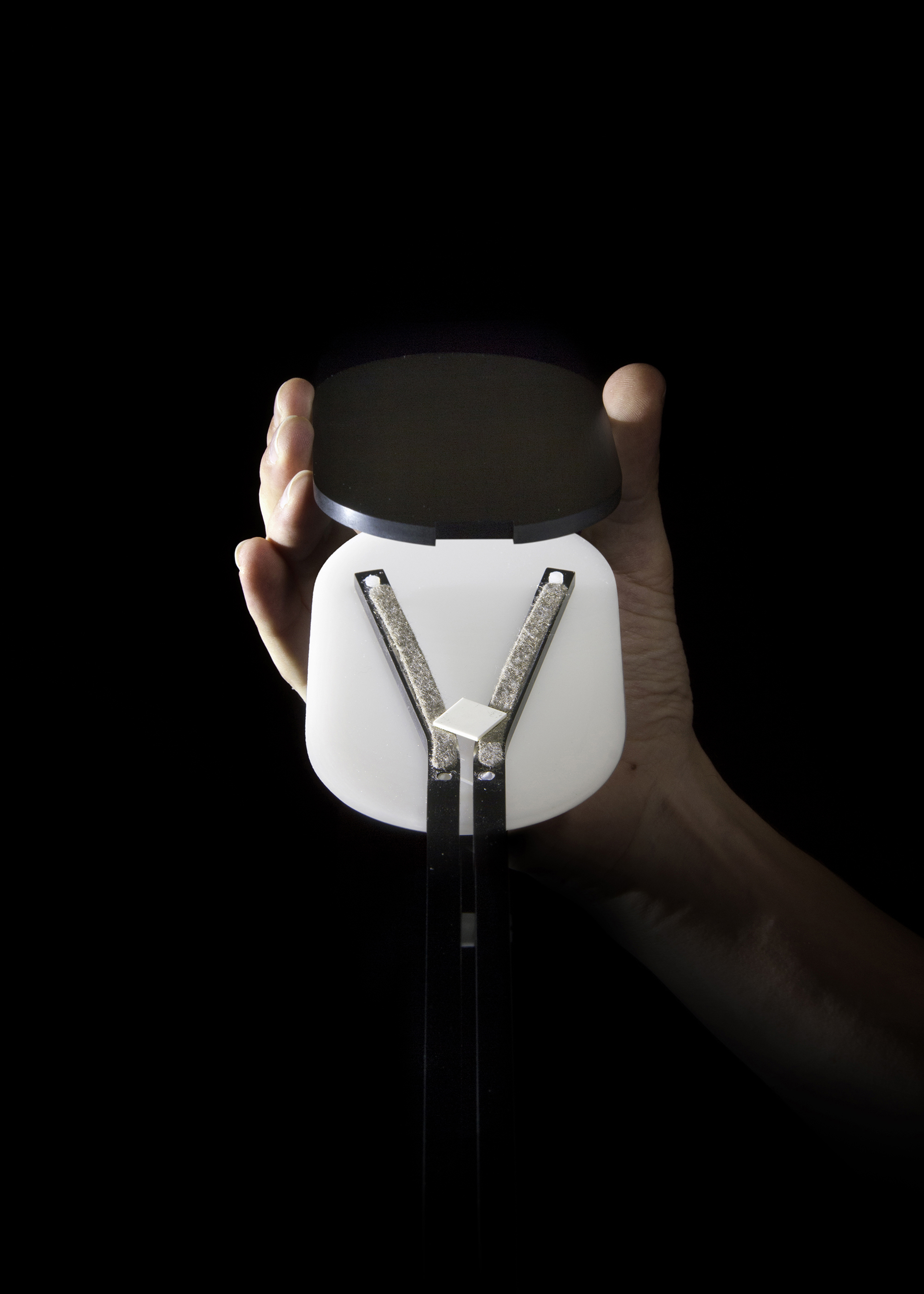 OHM A universal LED lamp, fully recyclable. Since a decade the LED industry has been booming due to environmental interest and energy efficiency. However this new technology being deprived of standard shapes and sizes, most LEDs are soldered to a chip making the whole product obsolete if a component is faulty. Ohm is a universal LED lamp, allowing the use of any low voltage LED through a low-tech and reliable system. The current is passing through the structure, allowing the switch to become a simple piece of conductive felt. The same felt is used to connect the LED to the structure, reducing to the maximum the amount of element and variety of material used. This simplicity allows the lamp to be easily unmounted, discarded and recycle. Ohm is made with the idea of versatility and optimization, aiming to survive the obsolescence of the technology it is using. |