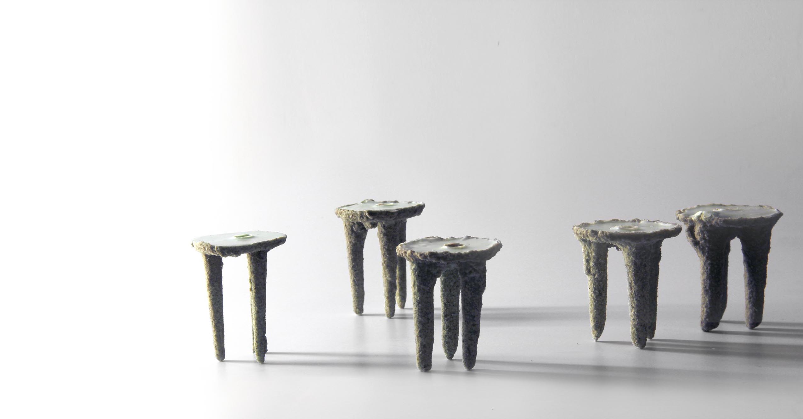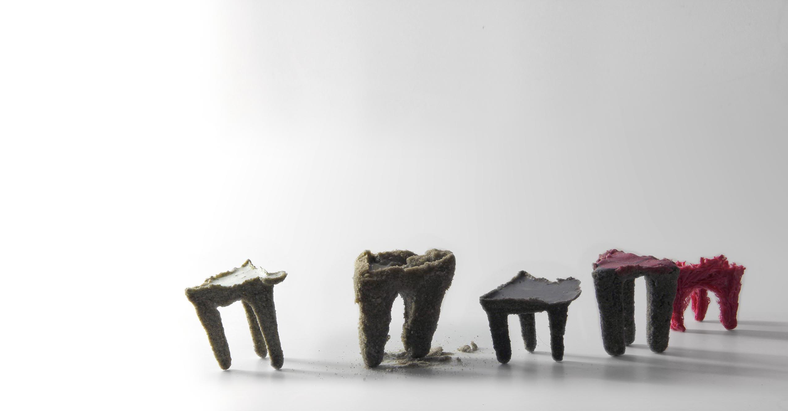 An entropy based production Roots are based on the notion of growth, the first stool is the mold of the next one and so one allowing the product to evolve within the series, developing its own shape based on the sand it has been poured in.